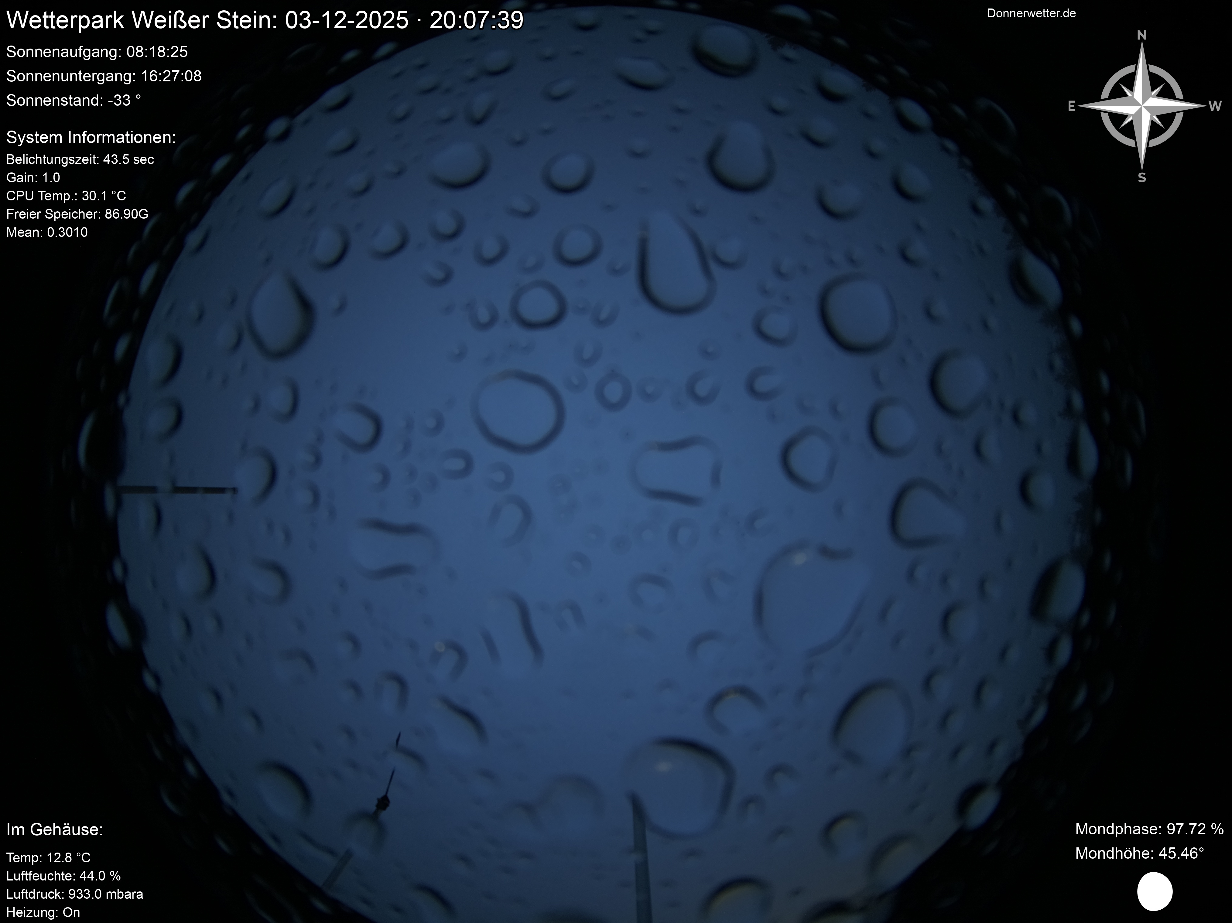 Und hier das aktuelle Bild der Sternen-Kamera. Bitte beachtet, dass die lichtempfindliche Linse der Spezialkamera bei Tageslicht keine brauchbaren Aufnahmen macht!